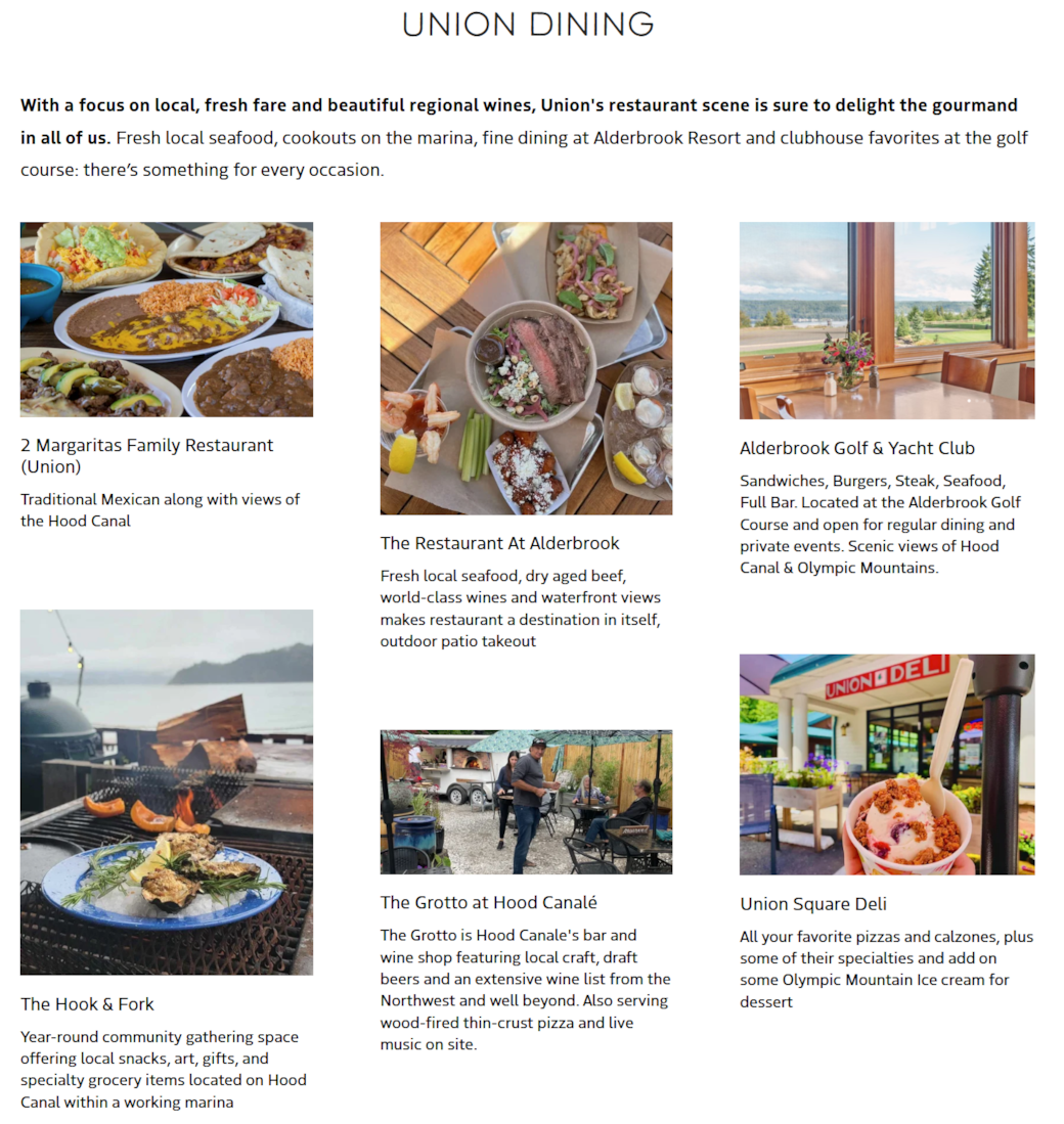 Dining options in Union, WA